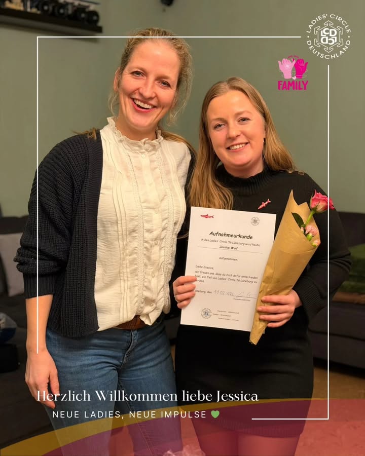 Wir durften Jessica offiziell in unserem Ladies Circle 56 Lüneburg aufnehmen und freuen uns riesig, dass du jetzt Teil unseres „Wir“ bist. ✨